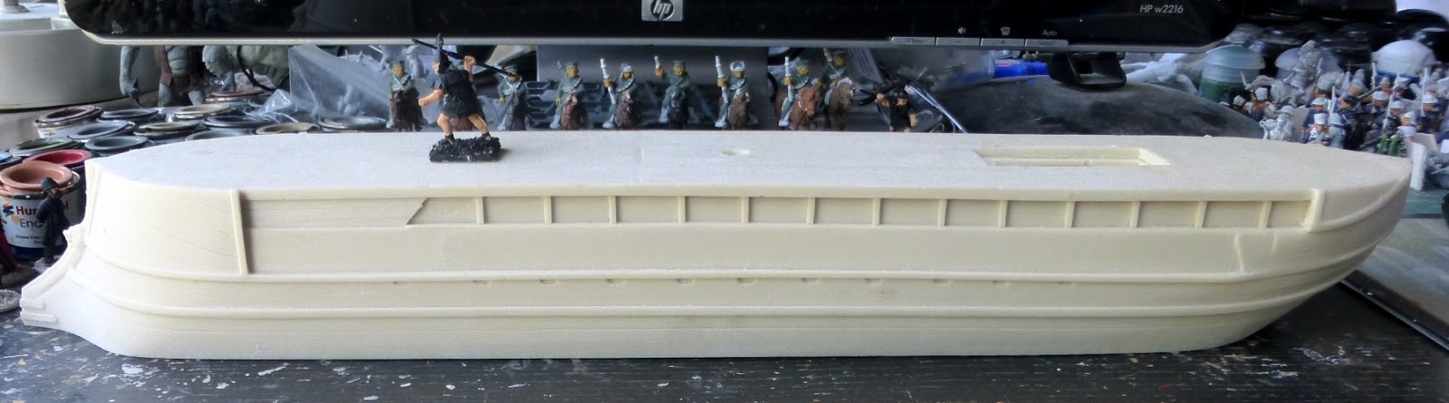 So, tomorrow my aim is to finish the oars and the sea base. During the week I want to tidy up the painting on the galley, including working on the two eyes for the bow. Next weekend it is masts and thinking about some rigging. This will be very minimalist as I want to be able to carry the galley to Salute in pieces as I am going on public transport (that should limit my purchases this year!)